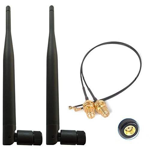 Akuoufour 2 x 6dBi 2.4GHz /5GHz/5.8GHz WiFi RP-SMA Antenna + 2 x 15cm IPEX Cable Directional Network Extension Mini PCIe PCI Cards WAN Repeater