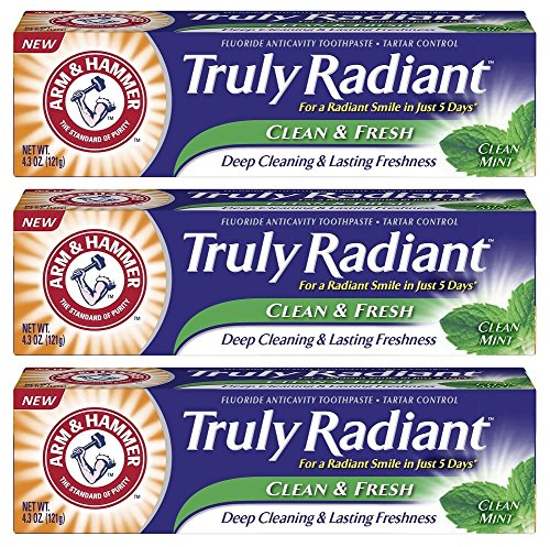 Arm & Hammer Truly Radiant Clean & Fresh Fluoride Toothpaste, Clean Mint 4.3 Ounce (Pack of 3)