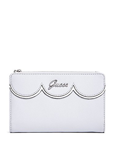 Product DescriptionThis take-anywhere slim clutch features a soft color-block faux-saffiano construction, silver-tone script logo hardware and a scalloped front design. Snap-button closure.0