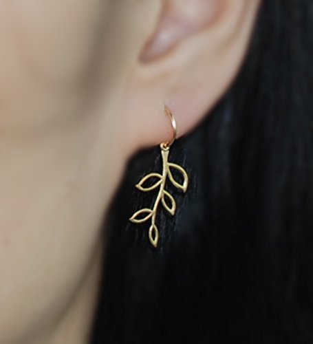 -. Title : 14K Gold Cartilage hoop earring with leaves,Tiny Cartilage Ring,Ear Lobe,piercing earring