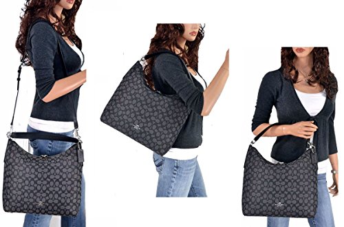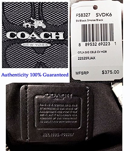 -. Feature : 🎀 Measures:15.5 Across the middle, 13"Across bottom (L) x 11"(H) x 5"(W). This is a large sized shoulder bag. / 🎀 Elegant and Absolutley BEAUTIFUL! Gorgeous Unique "C" outline signature in black on a smoke gray background which creates a stunning visual effect! Black Leather trim & Nickle Silvertone hardware. / 🎀 Interior: Top zipper closure, inside wall zipper pocket, cell phone holder and multifunctional pocket. leather Creed patch. / 🎀 Exterior: Shoudler strap with a 9" drop and attachable longer strap for shoulder & Crossbody wear! 22" drop. / 🎀 ~*~ New with Store Tags, care card and copy of Store Receipt. (dustbag not included) ~*~ AUTHENTICITY 100% GUARANTEED, Full Money Back Guarantee ~*~