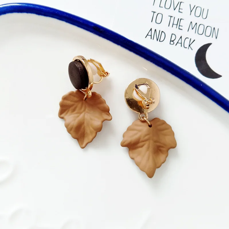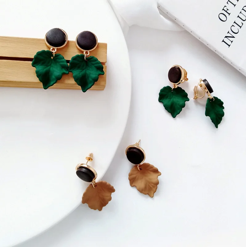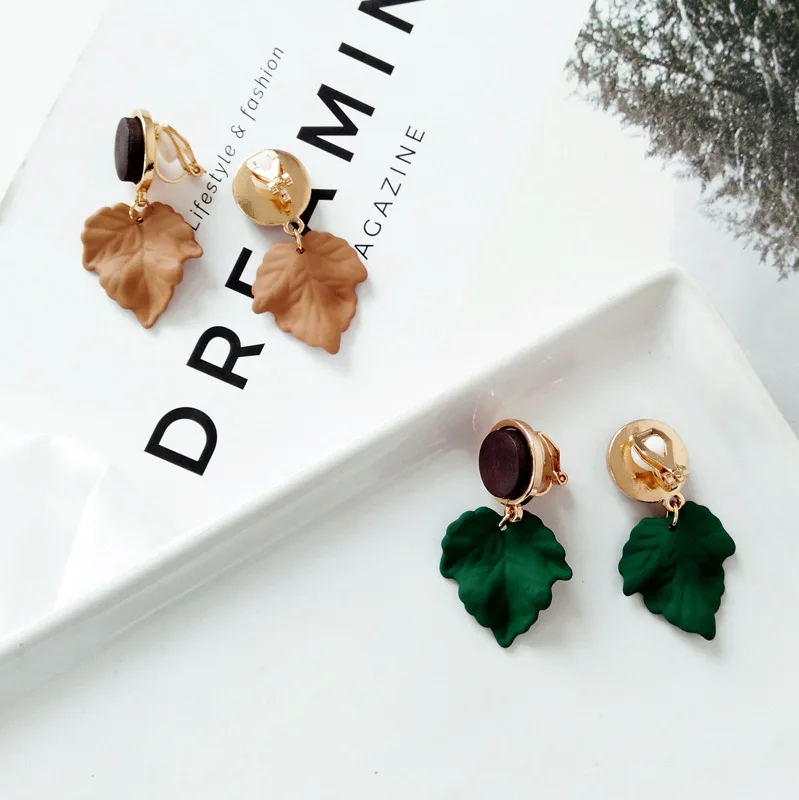 Decoration on earrings: Wooden Green Leaf Shape Clip Earrings