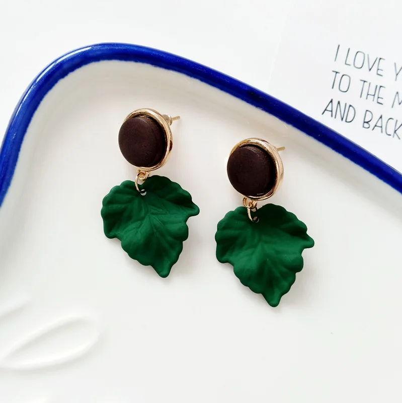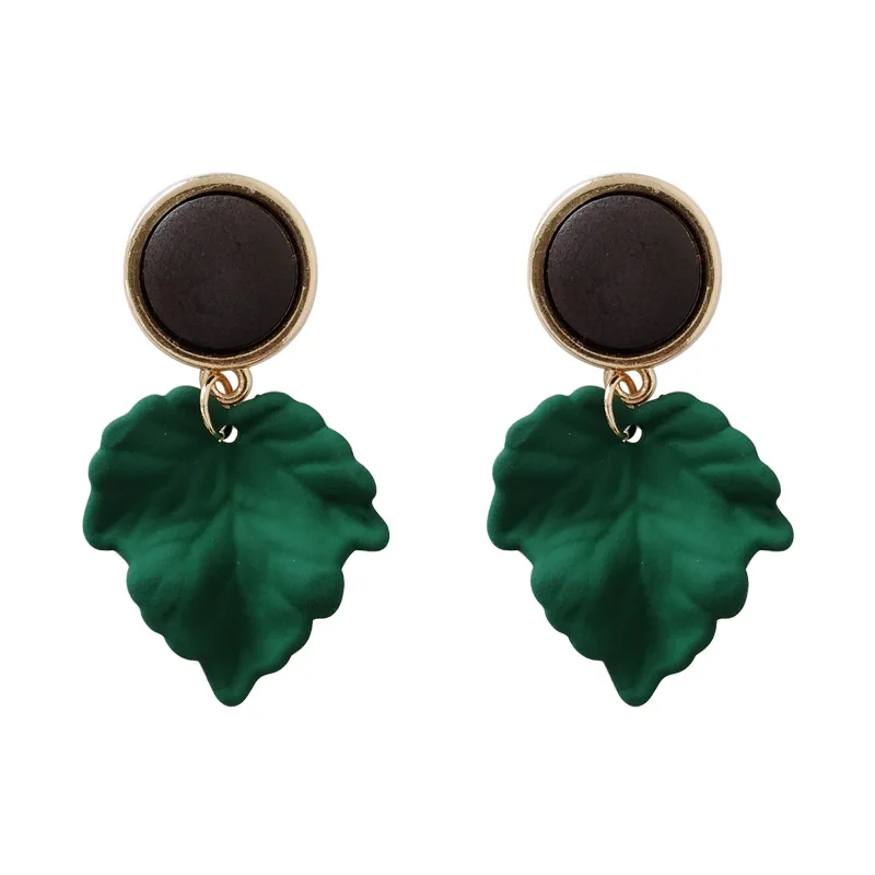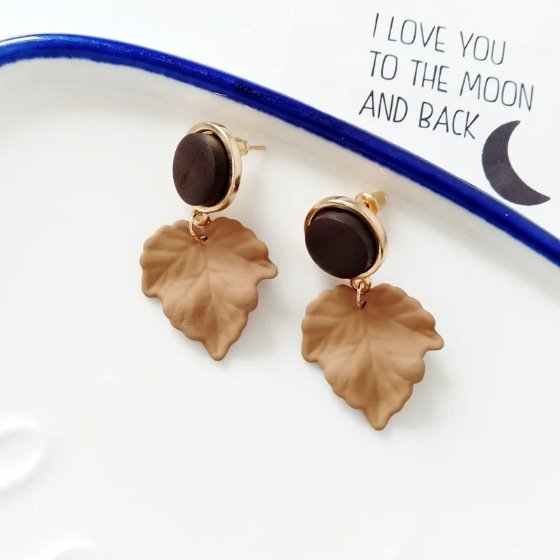 Pedant shape: Wooden Green Leaf Shape Clip Earrings