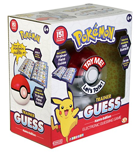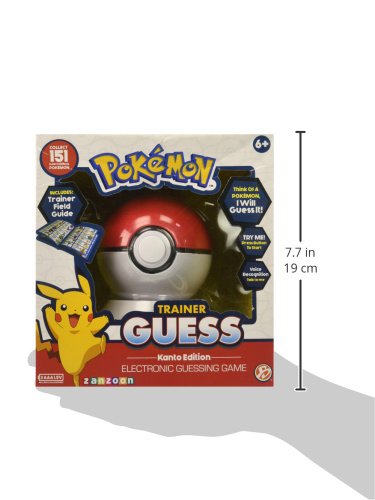 -. Binding : Toy -. Brand : Pokémon -. EAN : 3760145061386 -. Feature : Think of a Pokemon. Trainer Guess will guess it! / Speak your answers, using voice recognition Pokemon Trainer Guess will understand you. Amazing! / Includes the Pokémon Trainer Field Guide to help you learn and "Guess" all 151 Kanto Region Pokémon / 3 AAA batteries included -. IsAdultProduct : 0 -. Label : The Bridge Direct -. Manufacturer : The Bridge Direct -. Model : 09577 -. MPN : 09577 -. NumberOfItems : 1 -. PackageQuantity : 1 -. PartNumber : 09577 -. ProductGroup : Toy -. ProductTypeName : TOYS_AND_GAMES -. Publisher : The Bridge Direct -. ReleaseDate : 2017-07-15 -. Studio : The Bridge Direct -. Title : Pokemon Trainer Guess: Kanto Edition Electronic Game -. UPC : 885561095777 -. Warranty : No Warranty