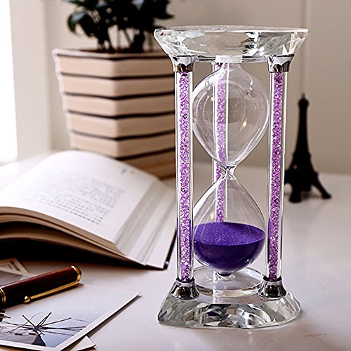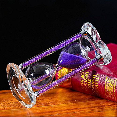 -. Title : BORWAY Hourglass, Heart-Shaped Crystal Sand Timer, 30/60 Minutes Sand Clock for Kitchen, Office, Decorative Use-Shiny Crystal with Blue/Purple Color Sand, Gift Package, 1 Pack