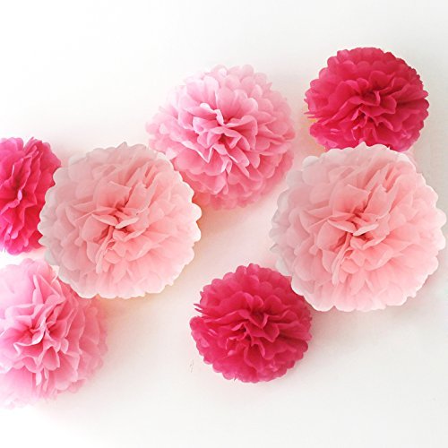 Zicome 12 Piece Tissue Paper Flower Pom Poms for Decorations,10 Inch, 12 Inch, 14 Inch, (Pink)