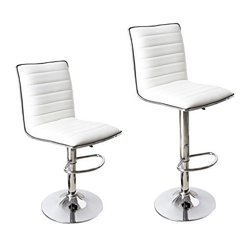 - Title : Adeco White Hydraulic Lift Adjustable Barstool with Leather Look, Horizontal Channel Tufting Chrome Accents Pedestal Base (Set of two)
