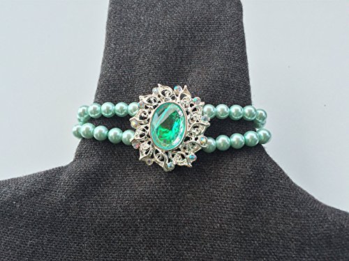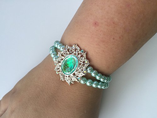 -. Title : 1 7" glamour statement bracelet, womens bracelet for women, pastel green bracelet, fake pearl bracelet, stacking bracelet, layered bracelet, multi strand bracelet