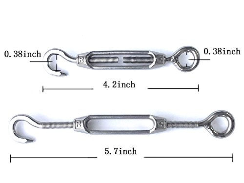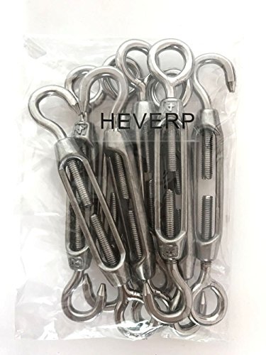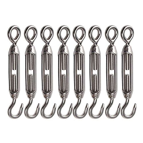 HEVERP 8PCS 304 Stainless Steel M4 Hook & Eye Turnbuckle Light Duty Wire Rope Tension