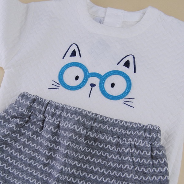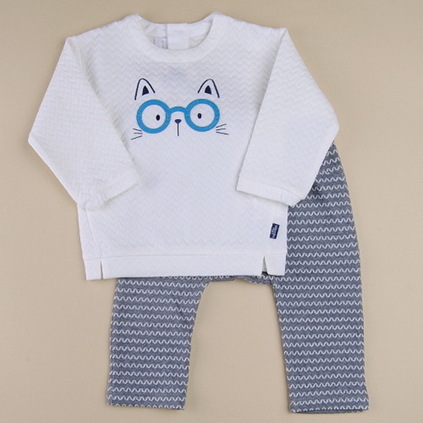 편한 미니쭈리와 ST포인트를 준 마린느낌의 상하복입니다.고양이가 안경을 쓴모양으로 귀여움을 더해 편안하고 귀여운 느낌의 상하복입니다.백일아이부터 입기 좋으며 선물용으로도 좋은 아이템입니다.
