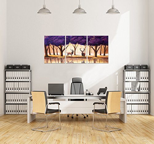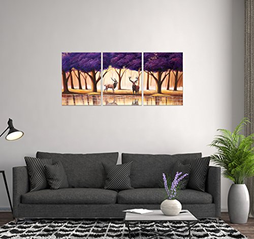 High Definition modern canvas printing art work,Purple scenery deer printed on high quality canvas. great gift idea for your relatives and friends. Stretched and Framed art canvas prints ready to hang for home decorations wall decor Canvas prints set