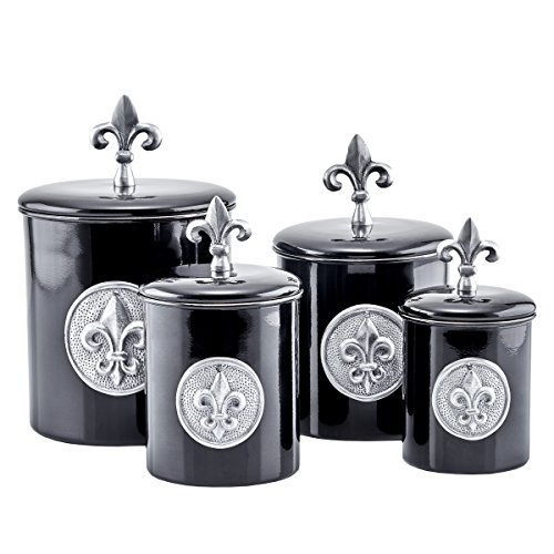 Old Dutch 4 Piece "Fleur De Lis" Canister Set with Fresh Seal Covers, 4 quart, Black