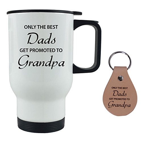 Ideal for Father's Day, Birthday, or Christmas Gift for Dad, Grandpa, Grandfather, Papa, Husband. Holds up to 14 oz of Liquid - Designed and Created in the USA and made of 100% Stainless Steel with Lid. Included with Genuine Leather Keychain - Made in the USA