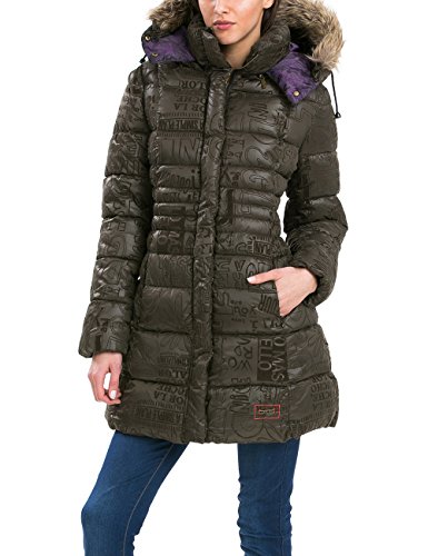Zip-front puffer jacket featuring faux-fur hood and allover illustration-inspired tonal patterning Narrowing channel quilting at waist Concealed zipper hand pockets Brand : Desigual Item model num : 58E29B4 MPN(PartNumber) : 58E29B4-4002 EAN : 8434101318160 Product Dimensions(LxWxH) :