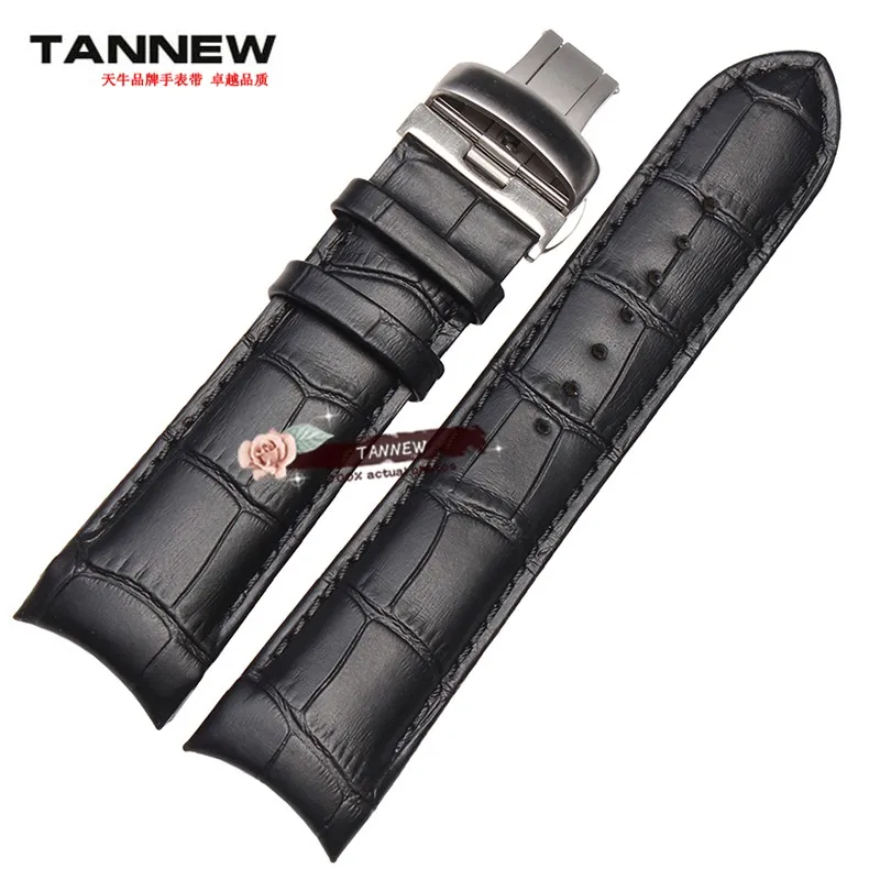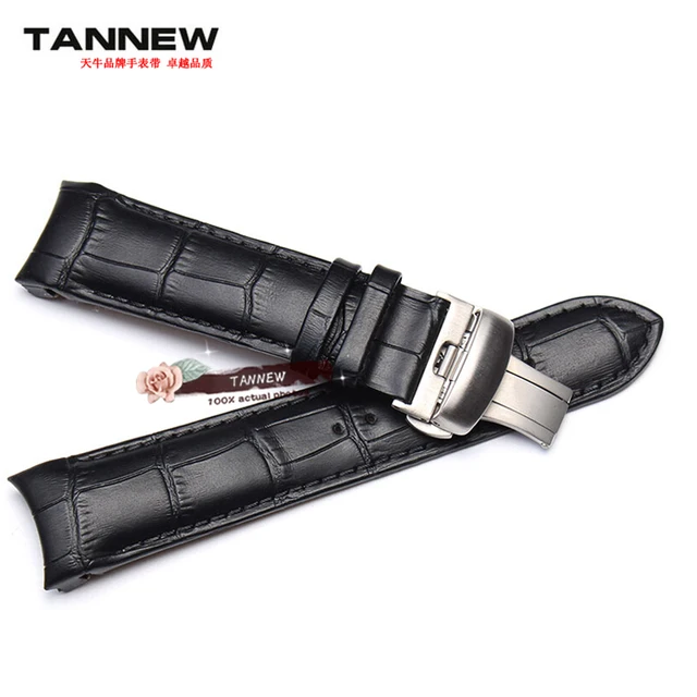 | [해외] 22 미리메터 23 미리메터 24 미리메터 고급 블랙 가죽 스트랩 솔리드 스테인레스 스틸 접이식 걸쇠 T035 M 시계 줄 |