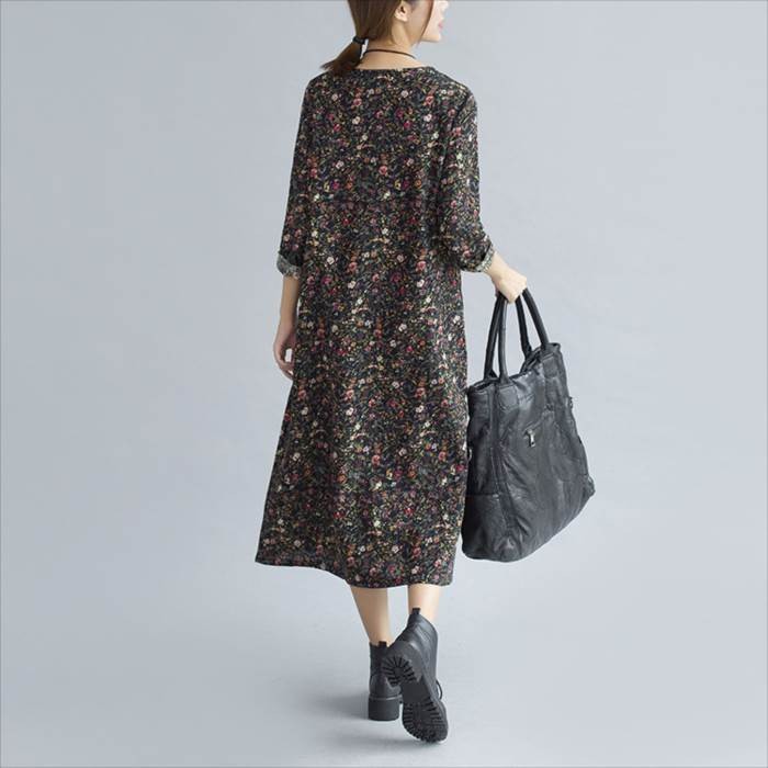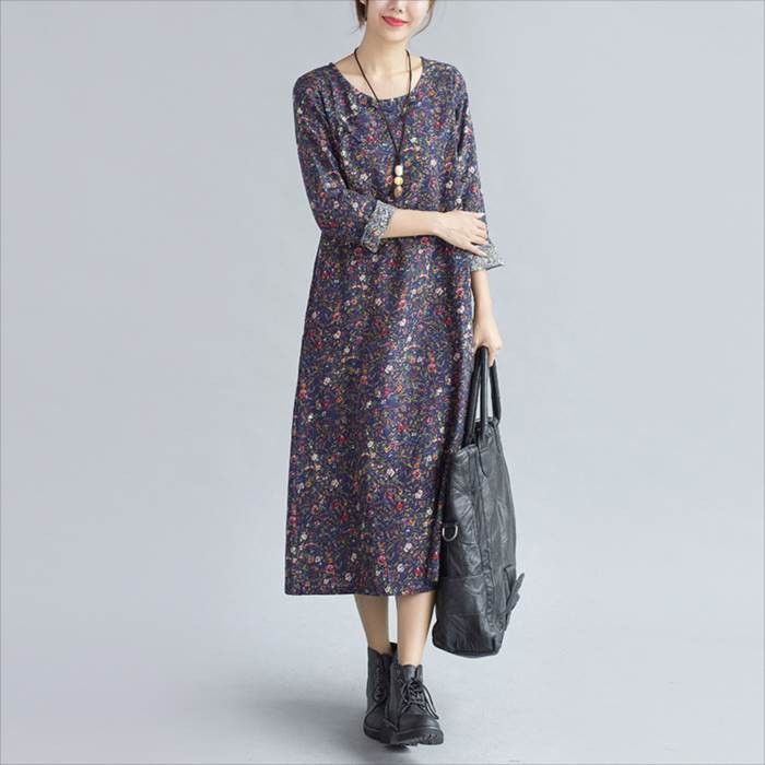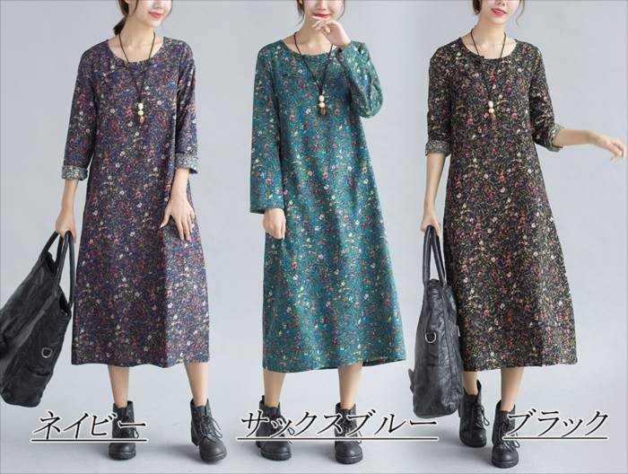 ●商品の特徴・シンプルなAラインシルエットが可愛い、ゆったり花柄ワンピース。・花柄は小さなレトロ調になっており、甘すぎない落ち着いた印象なので、ヤングからミセスまで幅広い年齢の方にオススメです。・両サイドにはポケットが施してあり、機能面もバッチリ♪素材はサラッとした強度のある麻を配合し、とっても爽やでゆったりな着心地。・首元にはさり気なく共生地のチャイナボタンを施し、程よいアクセントをプラス。・アウターとの相性も良く、コーディネート次第でオールシーズン長く活躍するおススメアイテムです。●サイズ展開 【M】 着丈105cm バスト94cm 袖丈55cm 肩幅39cm 【L】 着丈106cm バスト98cm 袖丈56cm 肩幅40cm※平均での採寸となりますので、多少の誤差が生じる場合がございます。ご了承くださいませ。●カラー展開 サックスブルー ネイビー ブラック ※画像をご参照下さい。●商品詳細 【素材】:コットン・リネン 【厚み】:普通 【裏地】:なし 【シルエット】:ゆったり 【伸縮性】:なし 【付属品】:なし (コーディネート使用の衣類、アクセサリー等は付属しません)