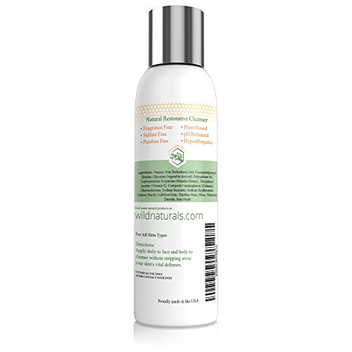 Cleanse, moisturize, nourish and restore your skin with a natural cleanser that works! stop using harsh soaps that can make your skin worse! Most soaps are far too strong for skin. They strip away everything - vital oils and nutrients - leaving skin dry, and defenseless. The thin layer on top of your skin - called the acid mantle - is vital to skin health, and is it's first line of defense against bacteria and the environment. Soap companies have been slow to adjust due to uneducated consumers - a trend that is quickly shifting. Why the wild naturals natural cleanser is better - our gentle cleanser is perfectly ph balanced at 5.5 - Just like your skin. Safe for sensitive skin.- We don't add water. You wont find it as our first ingredient, unlike many other cleansers.- Highly concentrated, quality ingredients. - Sulfate free, SLS free, paraben free, fragrance free, no dyes, and no harsh chemicals or preservatives.- It's for all skin types key ingredients- Manuka "healing" honey, found only in new Zealand, is included for it's anti-bacterial and special healing qualities.- Organic aloe vera is our first ingredient which soothes and moisturizes deep into your skin.- Chaim, found only in Australia, to reduce redness quickly and stimulate cell regeneration.- Vitamin e - a wonderful antioxidant that nourishes and protects your skin. Use wild naturals facial cleanser to help with dry skin and acne. Best when used with wild naturals Manuka honey face cream. Get it now! don't wait another day to have clean, happy, healthy skin!Feature
