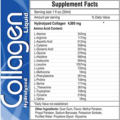 •Hydrolysate Liquid Collagen - ANTI-AGING POWERHOUSE - We lose 1-2% of our collagen every year after age 30, which is when physical aging becomes noticeable. Hydrolysate Liquid collagen is a unique, proprietary and essential anti-aging supplement that targets skin care problems and supports overall skin, hair and connective tissue function throughout the entire body. It also supports the reduction of body fat, while maintaining and building lean muscle tissue.