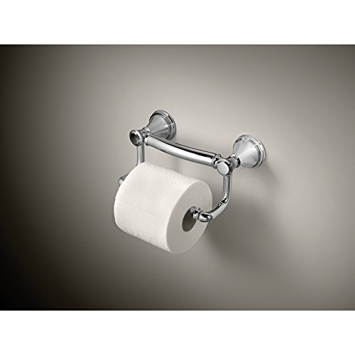 The Delta Decor Assist Traditional Pivoting Toilet Paper Holder with Assist Bar offers an easy to load pivoting tissue holder with an integrated assist bar for leverage, support and stability for up to 300 pounds.