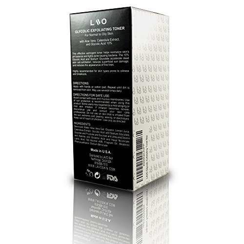 -. Title : Glycolic Acid Face Toner 10% - Facial Astringent - Pore Cleanser & Wash - Oily Skin Control + Fights Acne - Lactic + Amino Acid + Vitamin C - Natural Tonic - Use with Pads - Great with Cream, Serum, AHA Peel - For Men and Women - by LAVO - 6 fl oz