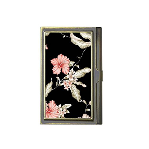 (patFina perry)/Accessories/Wallets, Money Key Organizers/DIRECT FROM USA/Vintage Black Pink Flowers Custom Fashion Business Bronze Name Card Holder Stainless Steel Box ...