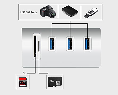 Cateck Bus-Powered USB 3.0 3-Port Aluminum Hub with SD/TF Card Reader Combo for iMac, MacBook Air, MacBook Pro, MacBook, Mac Mini, PCs and Laptops