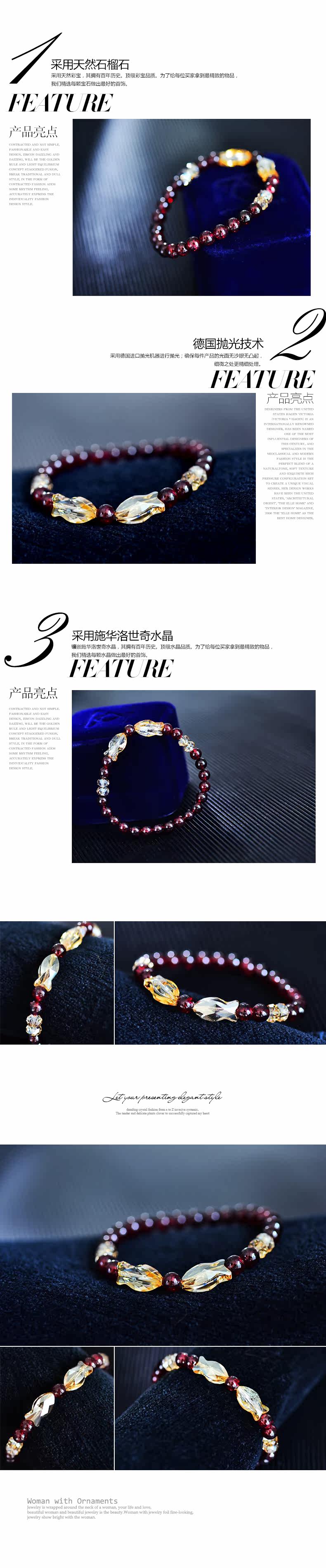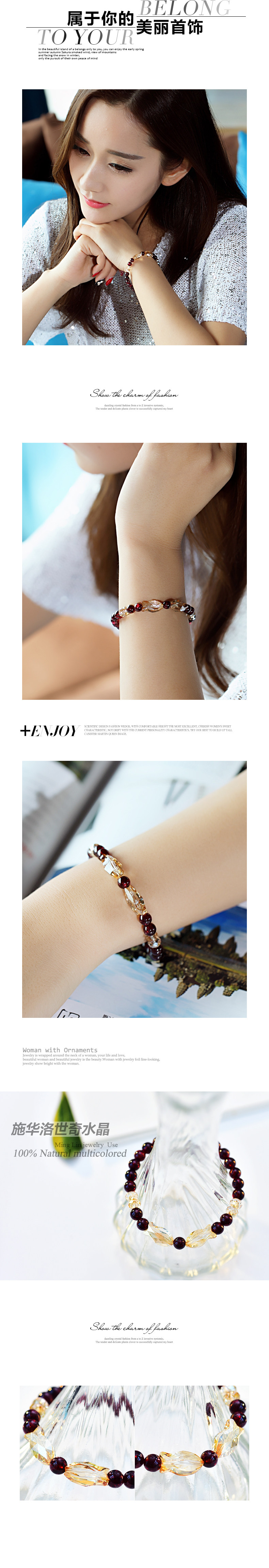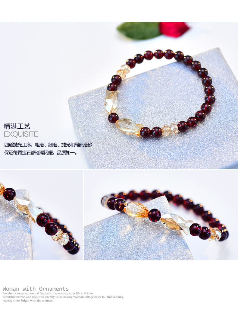茗琳酒红石榴石配施华洛世奇水晶小鱼恋手链 女 韩国版礼物