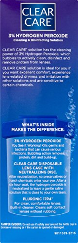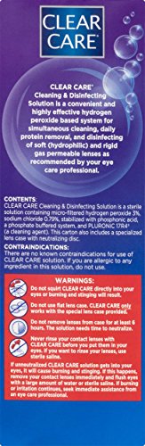 Studio : Clear Care Publisher : Clear Care Binding : Health and Beauty Product Description Clear Care* Cleaning Disinfecting Solution Triple Action Cleaning. Clear Care* cleaning disinfecting solution is a convenient and highly effective hydrogen peroxide based system for simultaneous cleaning, daily protein removal, and disinfecting of soft (hydrophilic) and rigid gas permeable lenses as recommended by your eye care professional. Clear Care solution is ideal for you if you want excellent comfort, experience lens-related dryness and irritation with other solutions and are sensitive to certain chemicals. 0