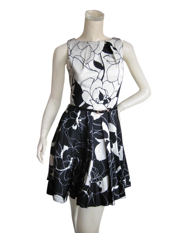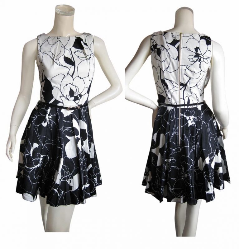 | ◆Closet クローゼット◆ モノトーンフローラル フィット&フレアワンピース | |