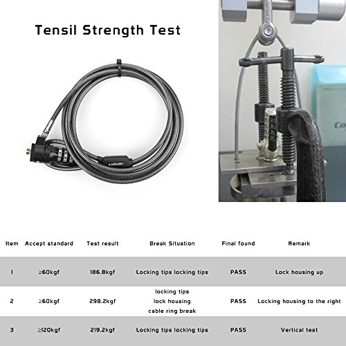 Protect your valuable equipment with this Etekcity 6 feet Laptop Security Combination Lock. This heavy duty security cable features a 4-dial combination lock and is suitable for most digital devices that are built with a kensington security slot.The Etekcity 6 feet Laptop Security Combination Lock is 6 feet in length designed using a 4.4mm thick, super-strong, galvanized twisted steel cable with PVC coating . Its built-in defense system guards against lock tampering. Its tensil strength up to 186kgf. It is ideally suited for LCD and Plasma Screens, Projectors, and Notebook computers. It's simple to use and installs in seconds! Most important, it is key-free!