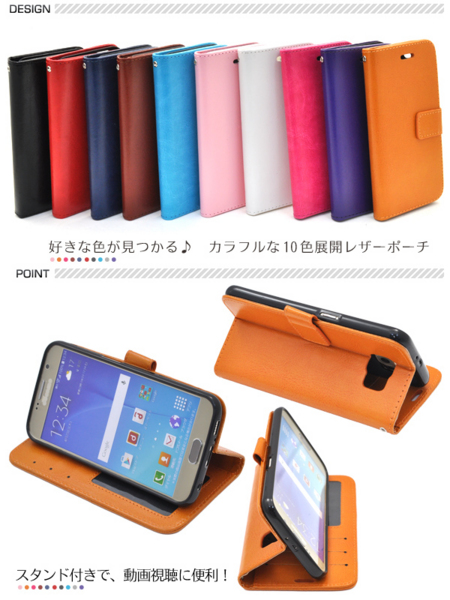 カラフルな10色展開のGalaxy S6 SC-05G用カラーレザースタンドケースポーチ。