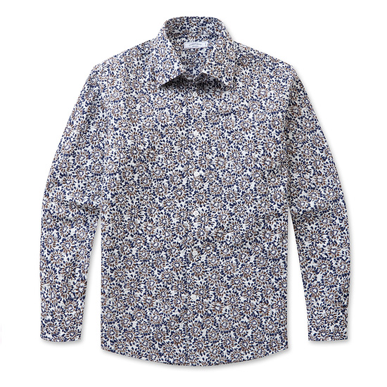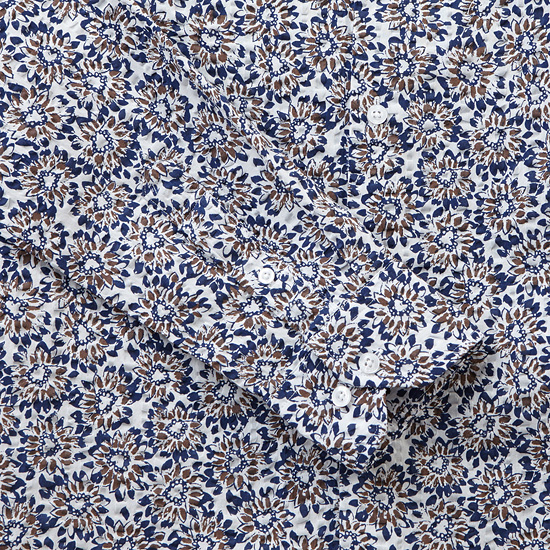- 플라워 프린트가 포인트인 남성 시어서커 셔츠.