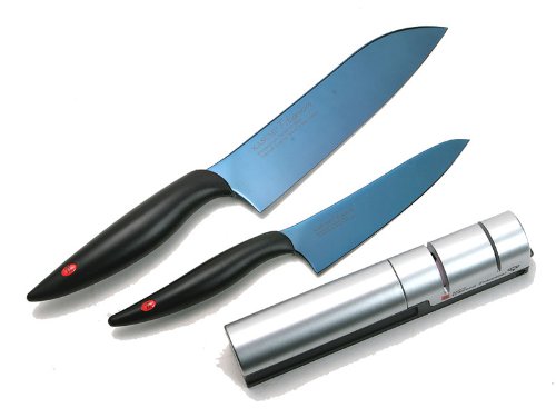 하 KASUMI 티타늄 3 덕부엌칼 소부엌칼 블루 샤프《나 세트》