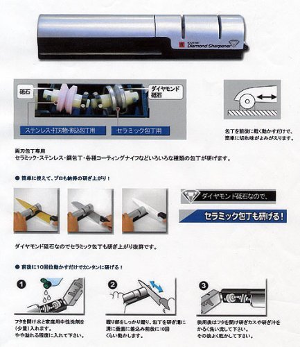 하 KASUMI 티타늄(티탄) 코팅 부엌칼 시리즈의 3 덕부엌칼(블루)소부엌칼(블루)다이아몬드 샤프《나》 의 정가22,140엔의세트입니다.초경질 합금강을 사용하고, 내마모 성이 뛰어난 숲《부덴파나지우무》강에 녹슴기 어렵고, 상처의 방지로도 효과적인 티타늄(티탄) 코팅을 세우고, 더욱 더 칼끝은 숙련 직공(직인)에게에 의하 본 칼 첨부에 마무리된 칼이 드는 정도 발군의 우아하고 획기적인 부엌칼입니다.해외에서디자인플러스상을 수상 하고, 세계30개국에서 판매되고, 일본을 시작 세계 각국의 프로의 요리사나,나이프 콜렉터에게는 동경의 부엌칼입니다.그 밖에 유례를 보지 않는 아름다움과,칼이 드는 정도를 중복 든 세계에 뽐내는 MADE IN SEKI,JAPAN의 부엌칼입니다.3 덕부엌칼(블루)¥9,720 Japanese Chef(Blue)No.22018/B 전장:32cm 칼날 길이:18cm 중량:117g 용도:고기,물고기,야채등으로 사용 할 수 있는 만능형.소부엌칼(블루)¥7,020 Small Chef(Blue)No.22013/B 전장:25cm 칼날 길이:13cm 중량:45g 용도:고기,작은 물고기,소야채,과일등,소형의 만능 부엌칼입니다.다이아몬드 샤프《나》 ¥5,400 Diamond Sharpener 중간 숫돌석#1000 Medium grit : / 황숫돌#240 Rough grit 치수:3.3×18×3.9cm 중량:87g 용도:양날칼 부엌칼을세트하여 몇차례 앞에 빼는 것에 의해 칼 첨부를 합니다.숲《부덴바나지우무》강에 마모성의 우수한 티타늄(티탄) 코팅을 세우고, 기후현관의 전통 기술인 본 칼 붙이게 1모씩 정중하게 마무리,발군의 칼이 드는 정도로 기능성을 실현 하여 해외에서도 높은 평가를 받고 있는 부엌칼입니다.