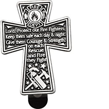 - Pewter visor clip reads "Lord, protect our fire fighters; keep them safe each day & night Give them courage & strength on each rescue and fire they fight"