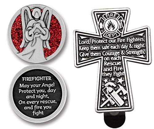 Firefighter Gift for Fireman | Cathedral Art Guardian Angel Pocket Token for FIREFIGHTER and Protect Our Firefighter Visor Clip | Inspirational keepsakes in bundle of 2 items