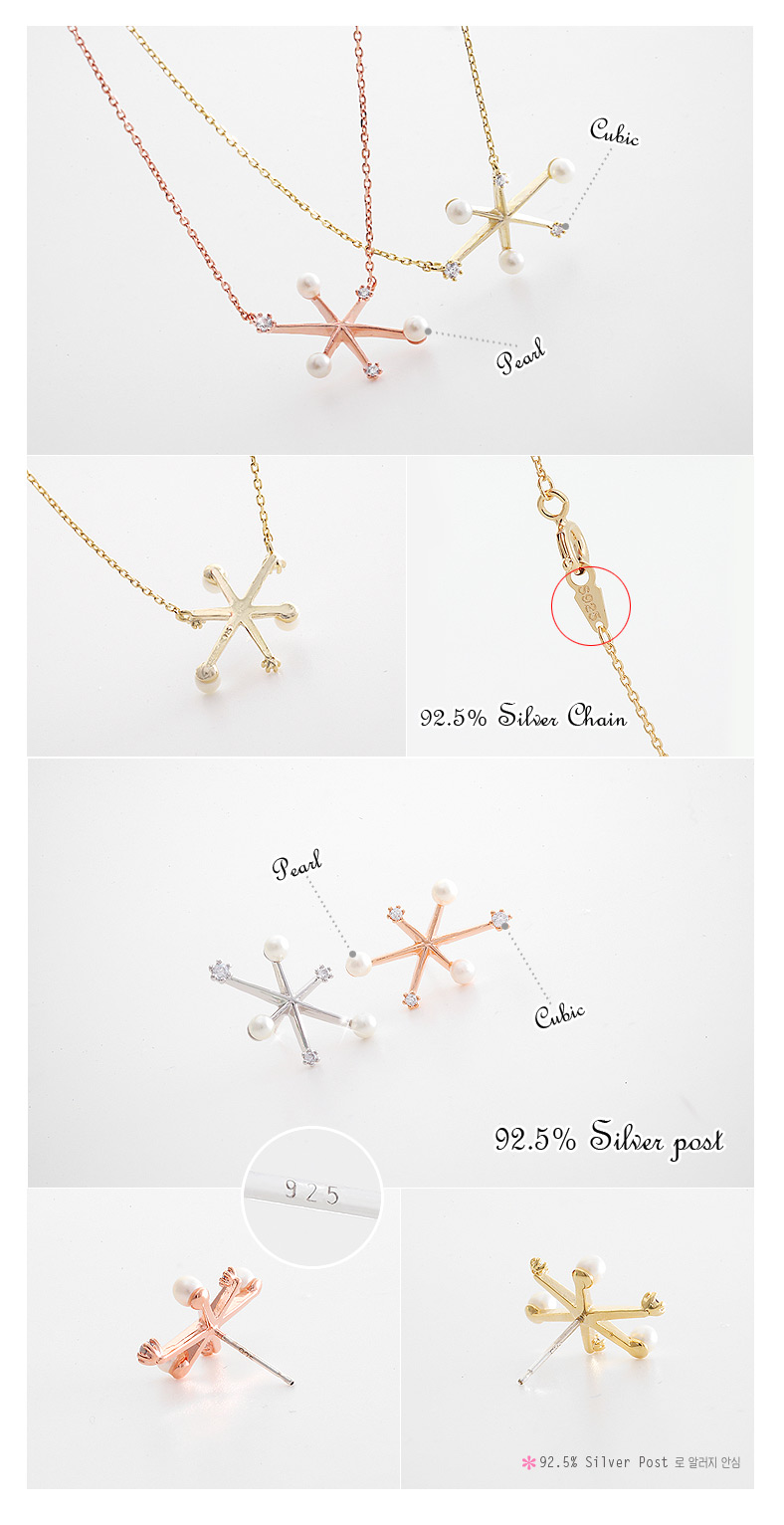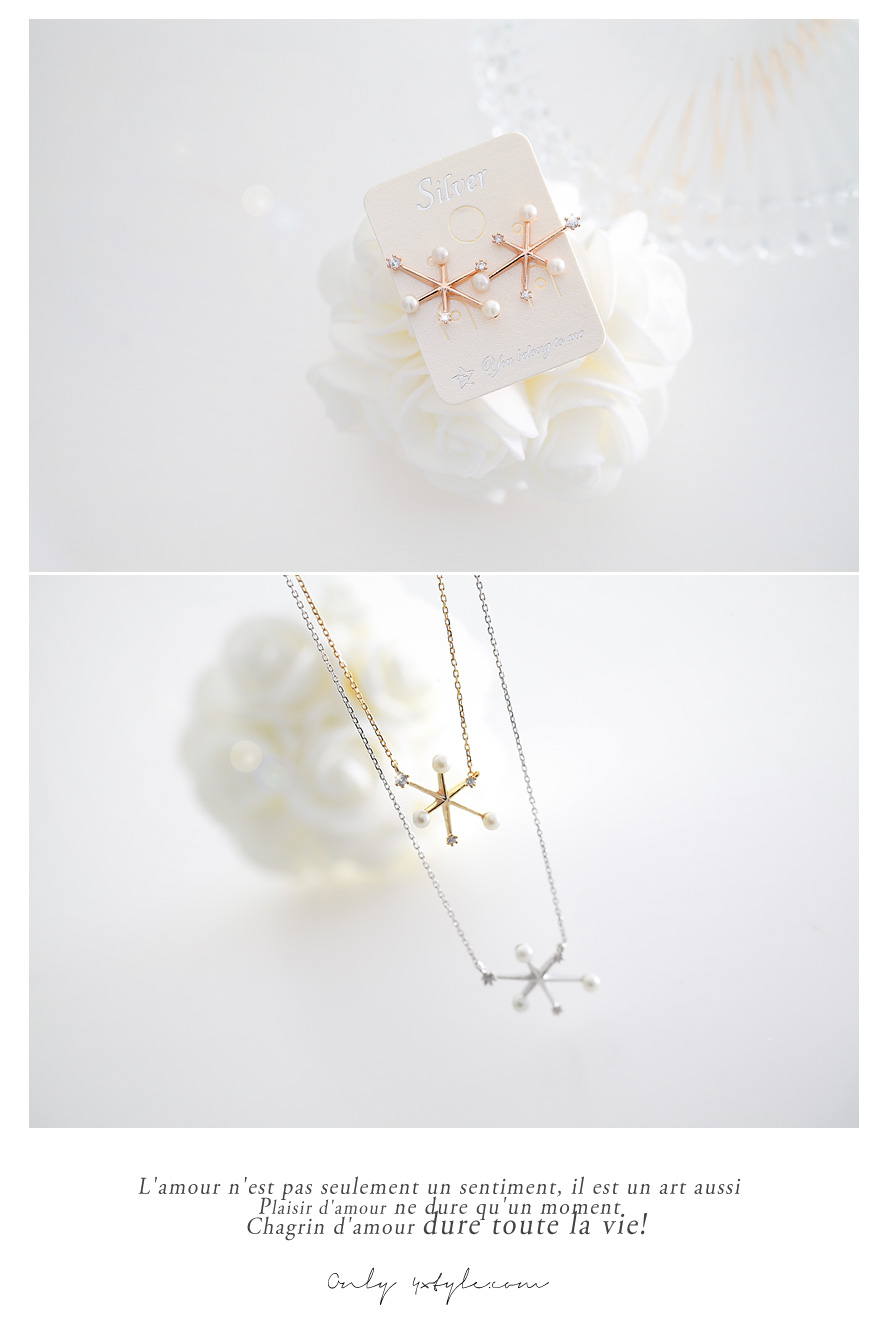 퓨어한 진주와 미니멀한 펜던트가 로맨틱한 분위기를 만들어 주는 버블 눈꽃 세트.