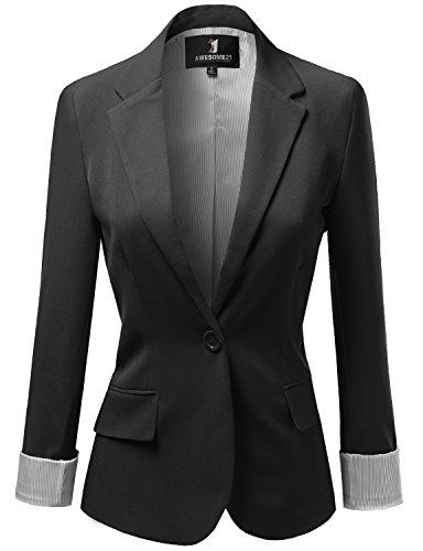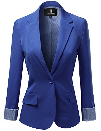 | Awesome21 Women's Solid Boyfriend Look Stripe Lining Blazers |