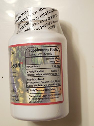 Amount per Serving: Dexpanthenol 10 mg L-Acetyl Carnitine 500 mg Forslean (Coleus forskolin) 100 mg Proprietary Blend: Pycnogenols, Coenzyme Q10, Marine Lipids EPA/DHA, and Trace Minerals