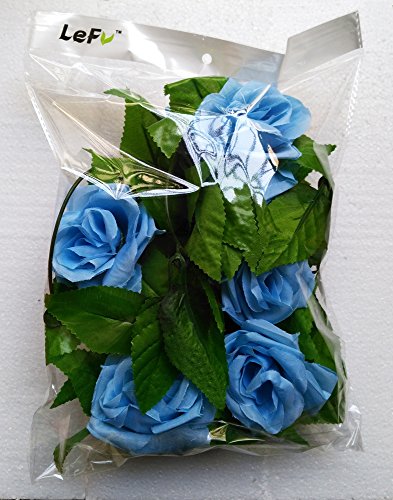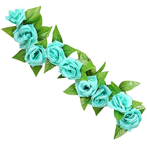 LEFV™ 8 Feet Rose Vines Artificial Garland with Green Leaves,Acid Blue