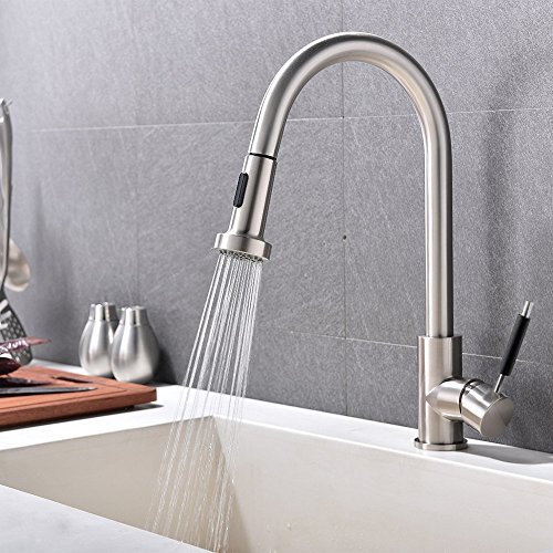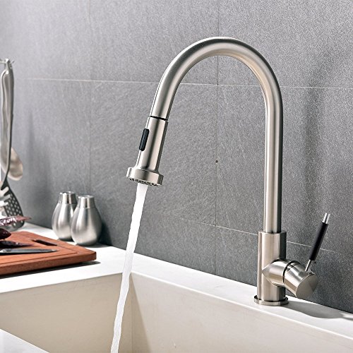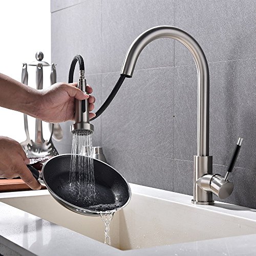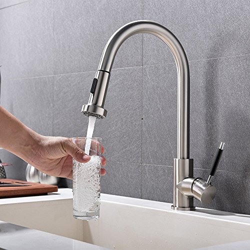 VAPSINT Best Modern High Arch Stainless Steel Single Handle Brushed Nickel Pull Out Sprayer Kitchen Faucets, Pull Down Kitchen Sink Faucet