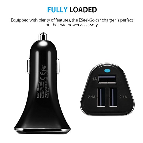 - ESEEKGO 3 PORT CAR CHARGER ADVANTAGE: you can charge your tablet and cellphone at the same time,and the other port can share with your friends,family and lovers to use it.