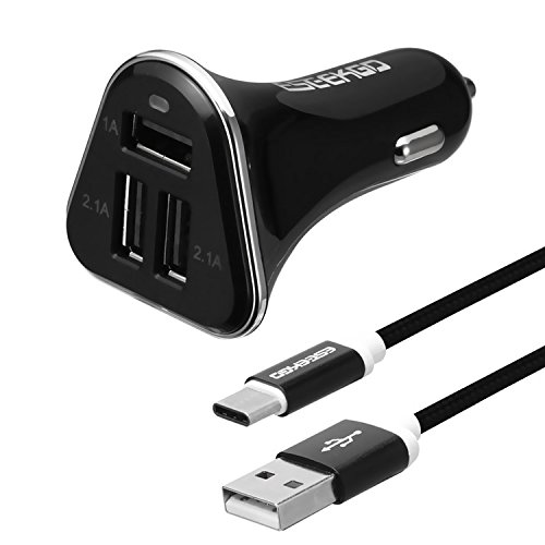 Car Charger for Samsung S8,ESEEKGO 5.2A/26W 3 Port Car Adapter with Type C Cable for LG V20 G5 G6, Huawei P9,Google Pixel (Black)
