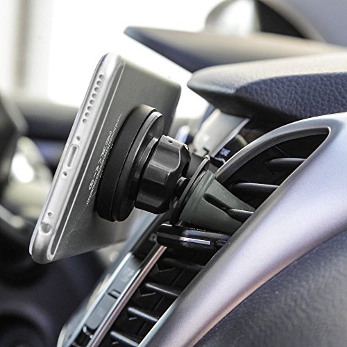 1) This magnetic air vent car mount for cell phones is not bulky or space consuming at all. You don't need to suffice for keeping your phone in the cup holder or dashboard, that a normal car mount gets in the way. This magnetic car mount inserted into the Air Vent, instead of blocking your windshield.