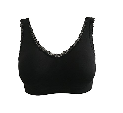 Orilife Women's 3 Pack Lace Seamless Wireless Sports Bra with Removable Pads, White/Black/Nude