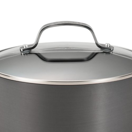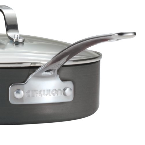 The versatile Circulon Genesis Hard-Anodized Nonstick 3-Quart Covered Straining Saucepan can do so much more than heat leftovers or boil potatoes. The saucepan's shatter-resistant glass lid features an extra deep lid rim with optional straining holes. Along with the convenient pour spout, these holes make it easy to pour out water after boiling new red potatoes or to pour low-calorie mushroom gravy into a serving dish. Heavy-duty, hard-anodized aluminum construction provides fast, even heating and outstanding performance day after day. The unique TOTAL Food Release System combines PFOA-free DuPont Autograph nonstick with raised circles to reduce abrasion from utensils. A long-lasting nonstick cooking surface resists scratching, staining and chipping and delivers extraordinary food release for dependable cooking results without added fats and oils. The stainless steel handle is solidly double riveted for strength. Oven safe to 500 Degree F, the saucepan offers superior-quality nonstick that makes lighter cooking and fast cleanup and works beautifully with other pieces from the Circulon Genesis line of cookware. Convenient, contemporary and practical, the Circulon Genesis Hard-Anodized Nonstick 3-Quart Covered Straining Saucepan can do it all - from boiling to pouring to straining!.Feature