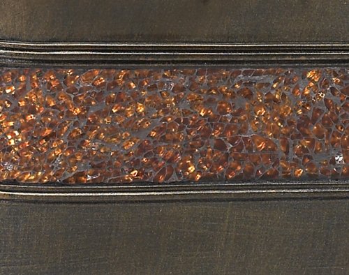 Metallic bronze finish with scalloped edges and inset bands of richly colored crackled glass
