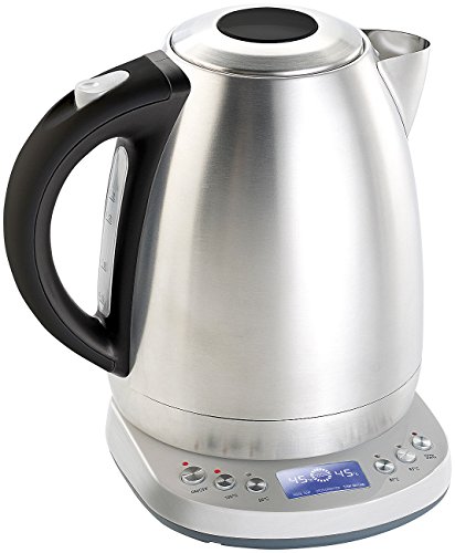 -. Feature : App-gesteuerter Wasserkocher mit Wi-Fi • Praktische Warmhaltefunktion: Hält das Wasser bis zu 30 Minuten auf Temperatur • Fassungsvermögen: 1,7 Liter • Flaches Heizelement / "Wasserkocher" App für Android- und iOS -Geräte, kostenlos im App Store oder bei Google Play • Kabellos, mit 360°-Basis in edlem Edelstahl-Look • Sichtfenster mit leicht abzulesender Skala • Integrierter Kalkfilter, herausnehmbar / 4 Temperaturen einstellbar: 65/80/95/100°C • Bedienung per App oder Tastenfeld an der Basis • Automatische Abschaltfunktion • Leistung: 1850 Watt / Tee-Timer: Bis zu 6 Min. Ziehzeit einstellbar • Wärmeisolierter Griff • Trockengehschutz • Stromversorgung: 230 V (Kabellänge 65 cm) / Maße: 21cm hoch, Ø 16 cm