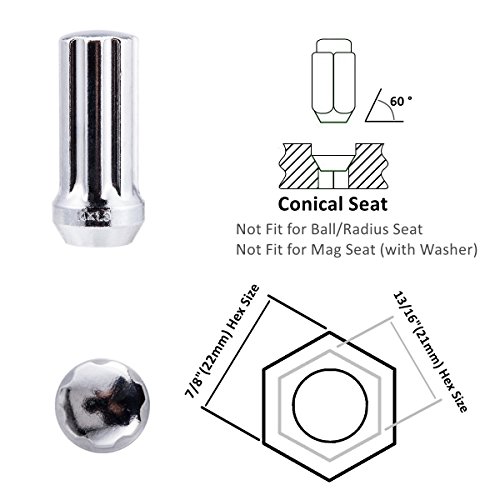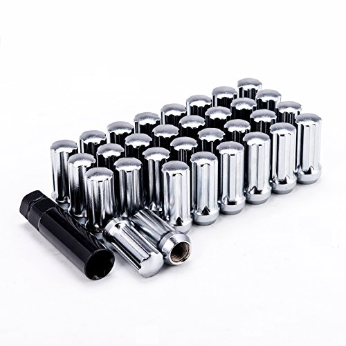 Orion Motor Tech 14x1.5 Carbon Stainless Steel Chrome Wheel Lug Nuts Locks - 32 Pcs Nuts & 1 Key - Dodge Ford GMC Hummer Ram 1500 2500 3500 F-250 F-350 Savana Sierra Suburban H2