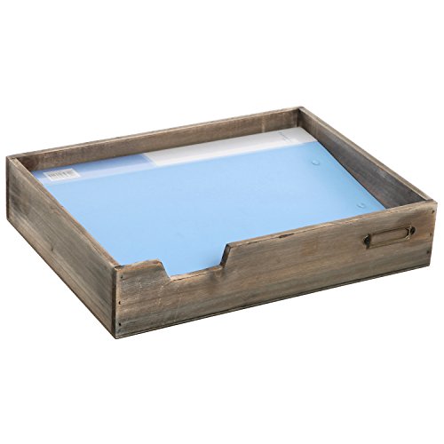 MyGift® Distressed Finish Brown Vintage Wood Office Desktop Paper, File, Folder, Magazine Holder Tray